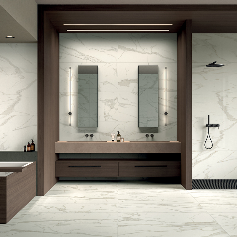 - Bright open spaces may benefit from white ceramic tiles to reflect light and feel clean.